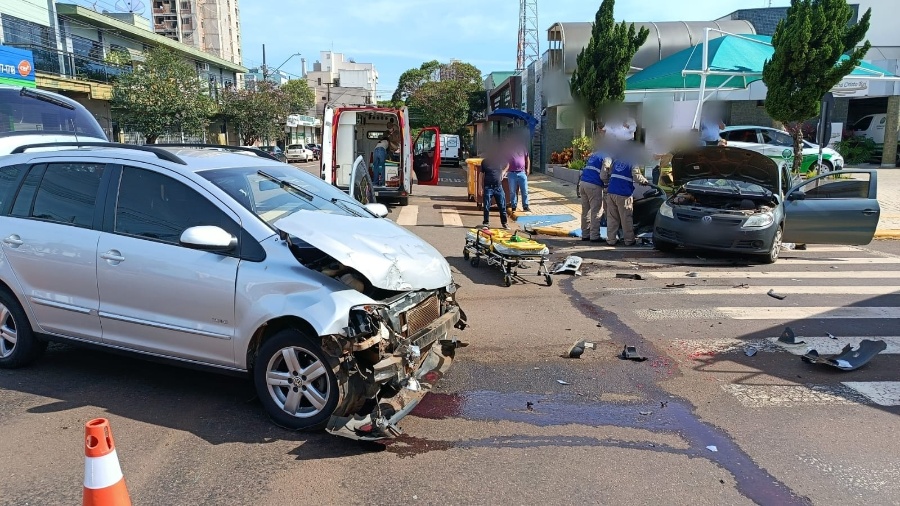 Duas pessoas ficaram feridas na manhã desta sexta-feira (28) após uma colisão entre dois carros no centro de Toledo.