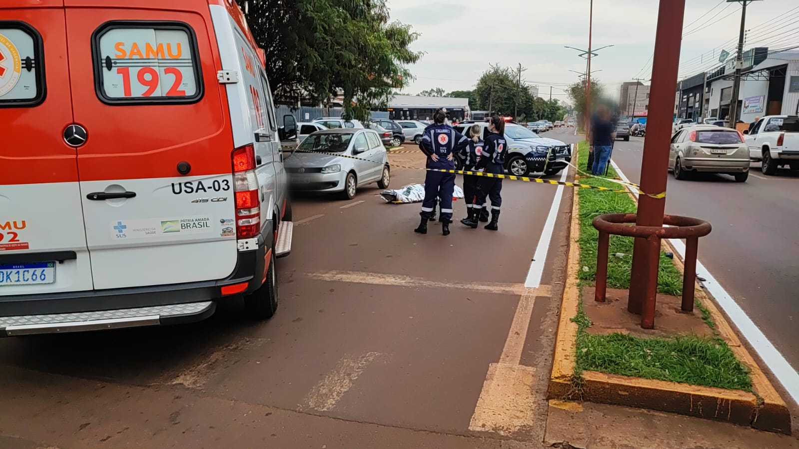 A Guarda Municipal isolou o local e acionou as equipes da Polícia Civil e Criminalística. O corpo da ciclista será encaminhado ao Instituto Médico Legal.