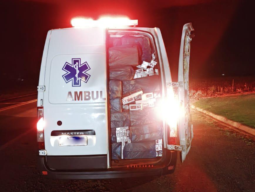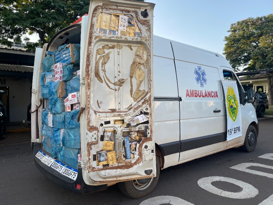 Conforme as informações, o veículo foi abordado na PR-486, região de Assis. No interior da falsa ambulância, os policiais encontraram uma carga de cigarros.