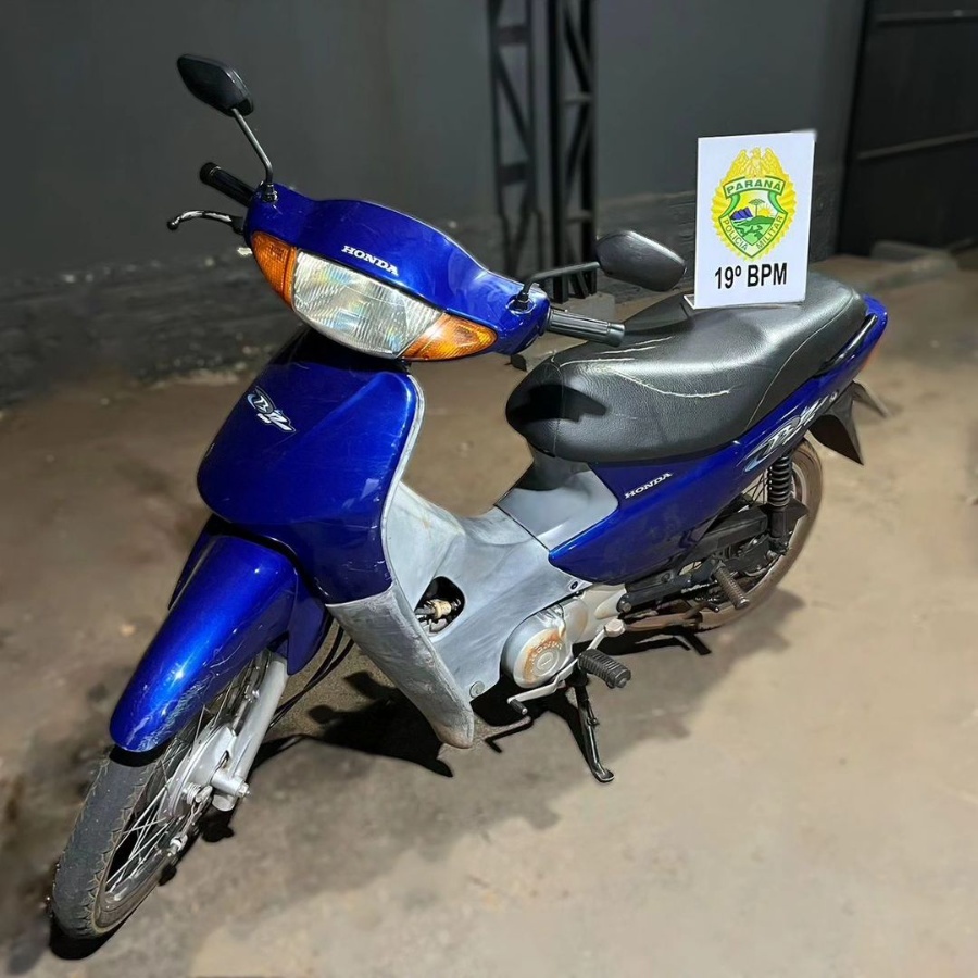 Após receber uma denúncia anônima sobre uma motocicleta abandonada, a Polícia Militar recuperou uma Honda Biz azul furtada na noite de terça-feira (24), no bairro Jardim Europa, em Toledo.