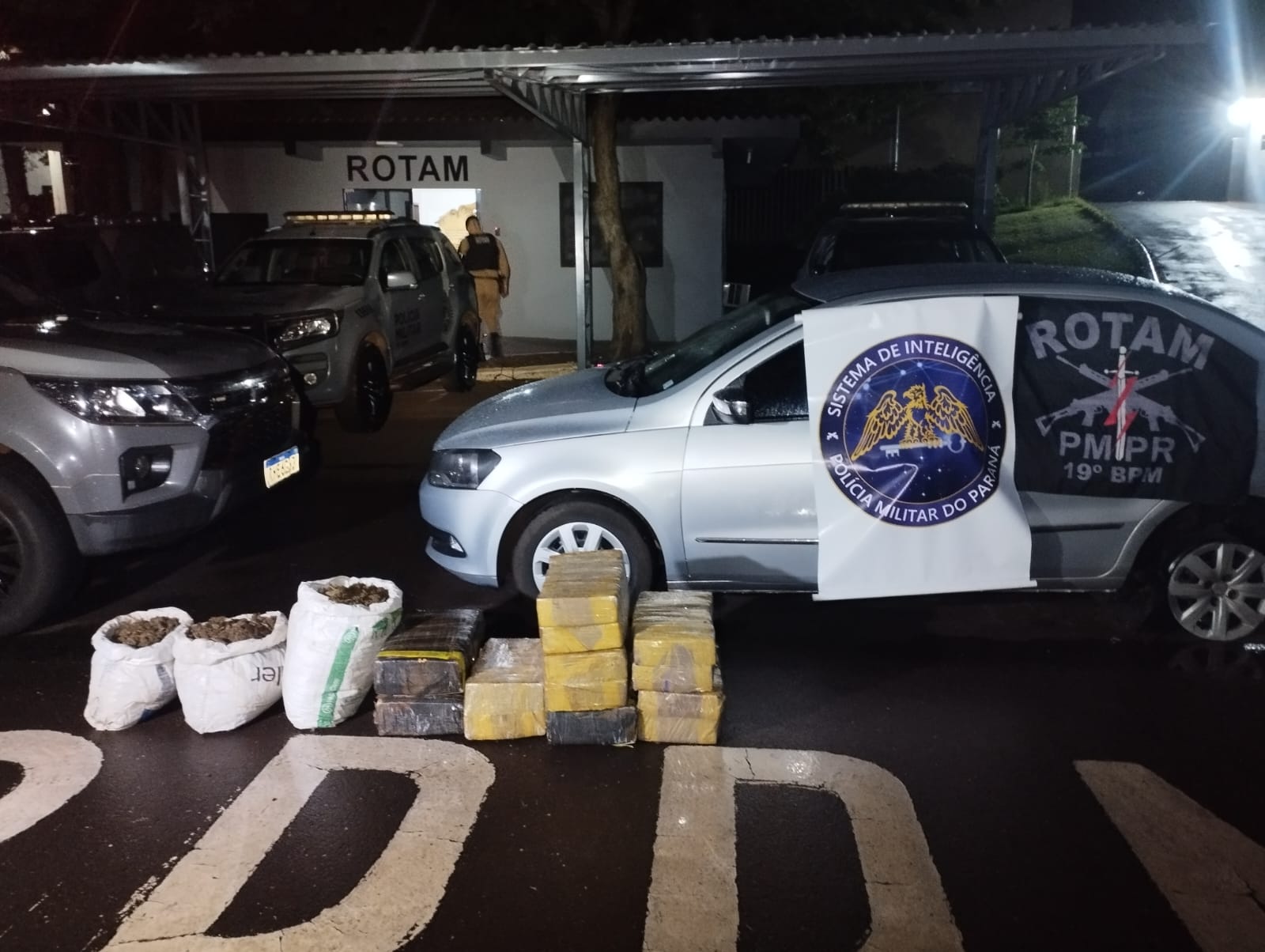 Segundo a PM, uma equipe ROTAM, com o apoio do setor de inteligência, recebeu uma denúncia de que um veículo VW/Voyage prata transportaria uma carga de maconha da cidade de Santa Helena para Toledo, passando por Marechal Cândido Rondon.