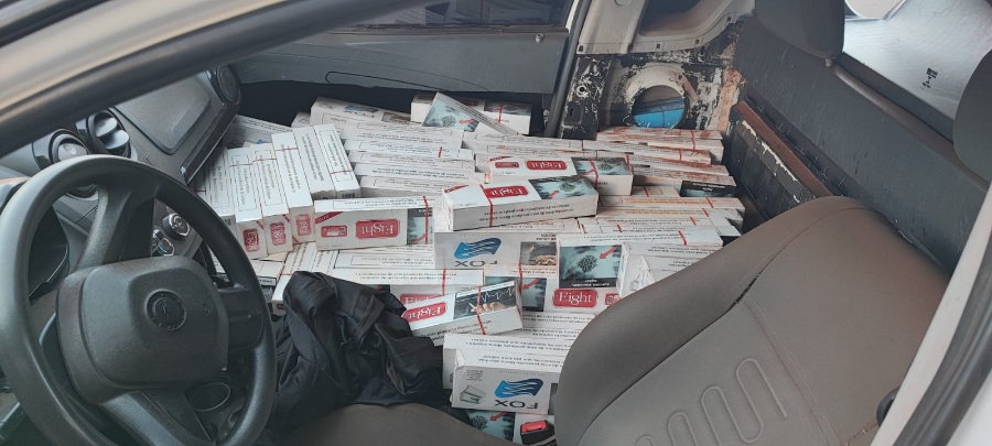 A equipe solicitou o apoio da PRF, que estava nas proximidades, para realizar a abordagem. O condutor do veículo parou no acostamento e foi revistado pela equipe, que encontrou os pacotes de cigarro no compartimento de carga.