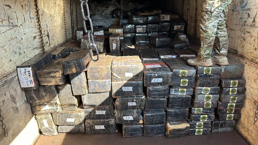 Um homem de 38 anos, que conduzia uma carreta, foi abordado pelos agentes e flagrado com 12 toneladas de maconha, 3 carabinas 5.56, 3 fuzis 7.62, 11 pistolas semi-automáticas, 540 munições 5.56, 50 munições 10 mm e 500 munições de calibre .40.