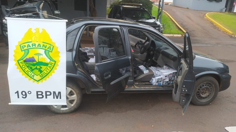Ao revistar o veículo, a equipe policial encontrou diversas caixas de cigarros da marca "Palermo" oriundas do Paraguai. O carro e a carga foram encaminhados à 19ª BPM para registro em boletim de ocorrência e, posteriormente, à Receita Federal em Cascavel.