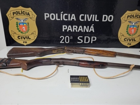 Na residência do suspeito, foram encontradas munições calibre 22 e duas espingardas. O indivíduo foi autuado por posse irregular de armas e munições, de acordo com a legislação vigente.