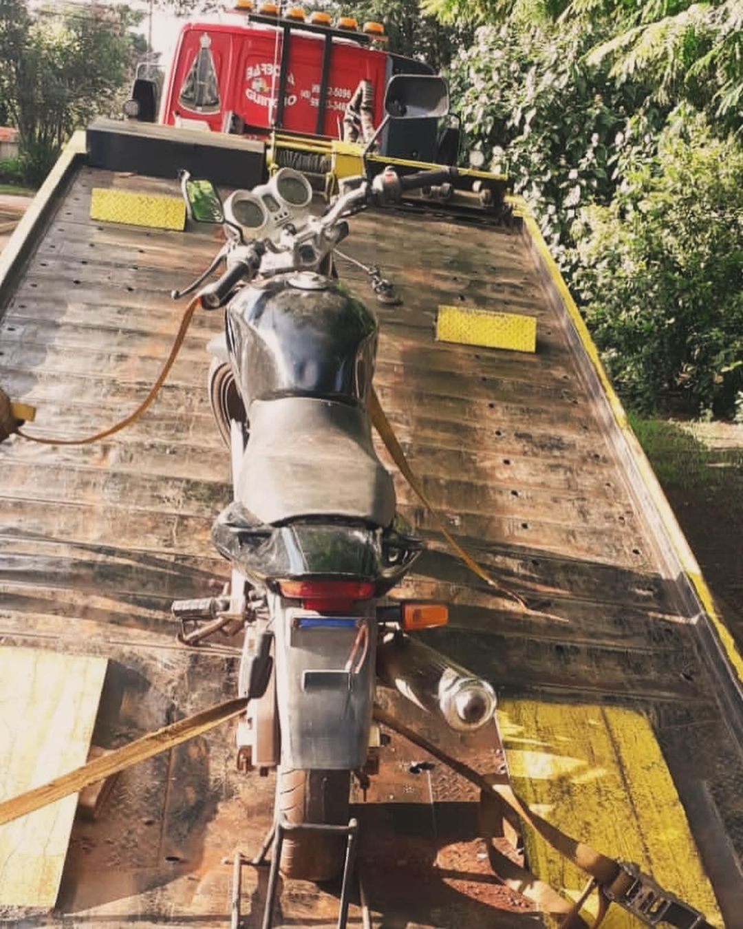 A motocicleta apreendida estava na garagem da residência e será investigada pela polícia.