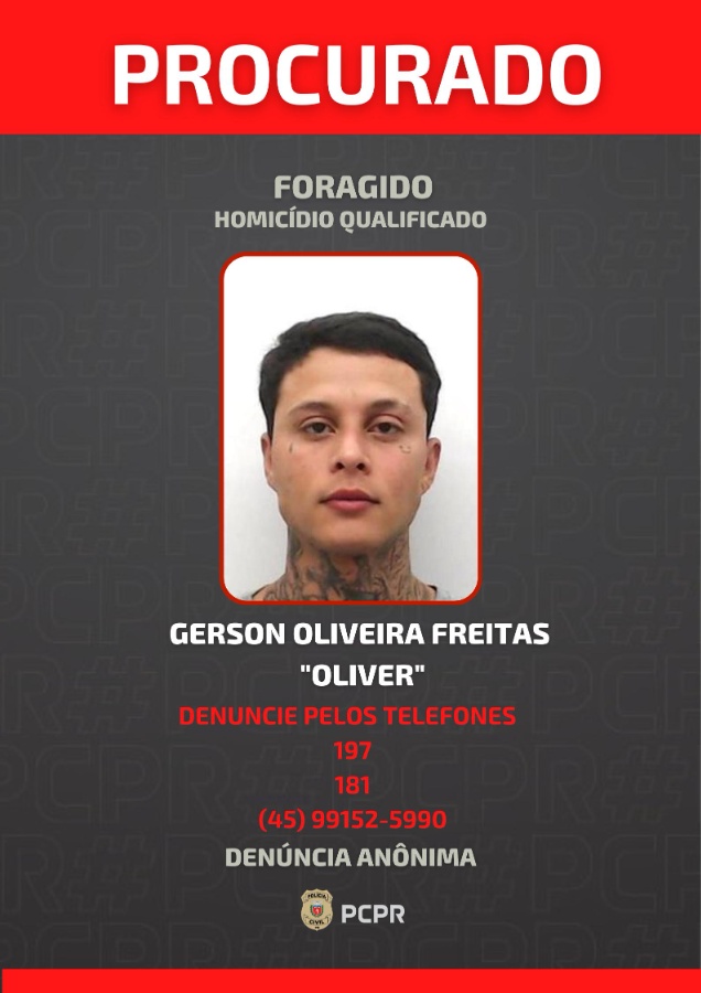 Segundo a PCPR, Gerson Oliveira Freitas, também de 24 anos, é procurado pela polícia e possui mandado de prisão temporária expedido. As autoridades acreditam que o crime, ocorrido em 21 de outubro, teve motivação passional, relacionada a uma desavença entre vítima e suspeito em abril deste ano.