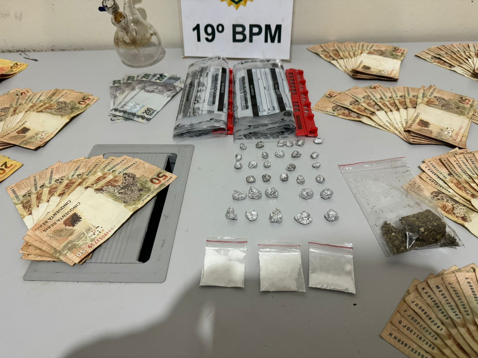 A Polícia Militar apreendeu drogas, dinheiro e materiais relacionados ao uso de entorpecentes em uma residência no Residencial Santa Clara, em Toledo, no sábado (08). A ação, durante cumprimento de mandado de busca e apreensão, resultou na prisão de um casal por tráfico de drogas.