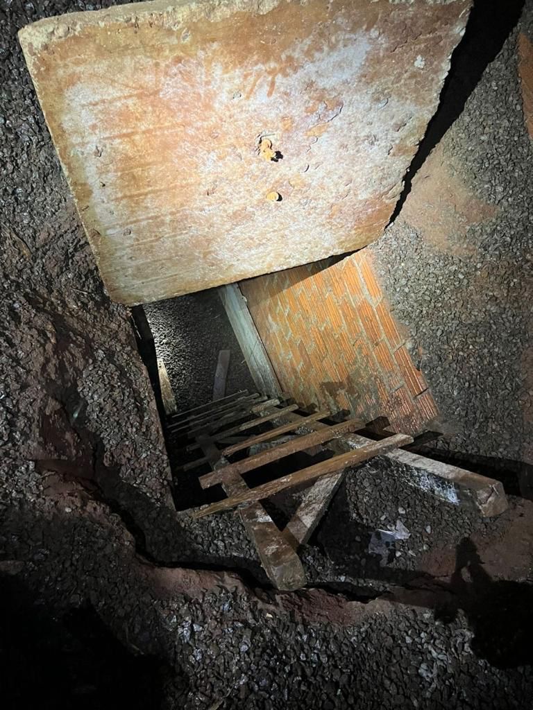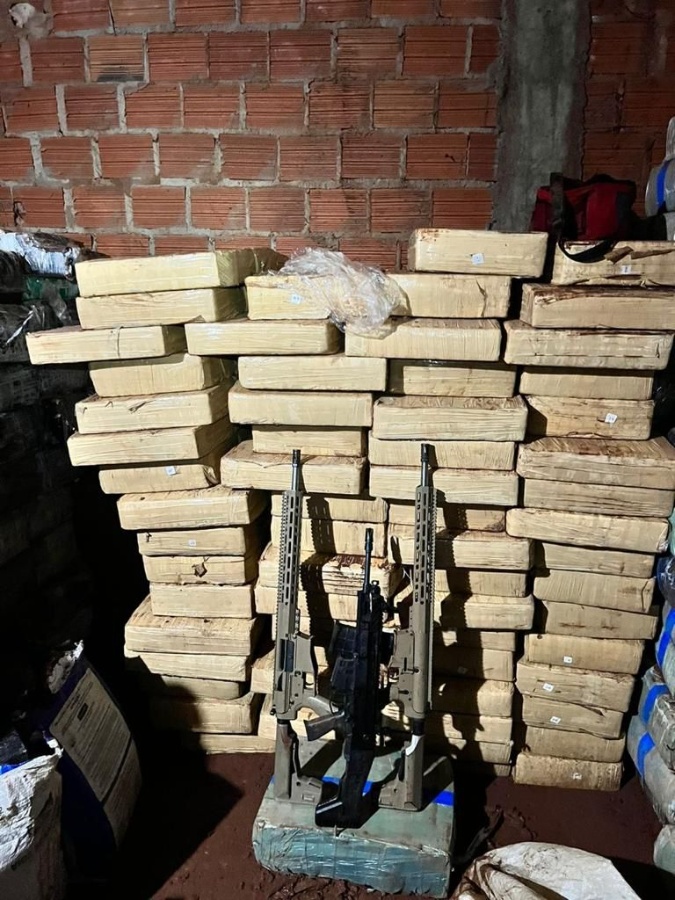 No local, os policiais encontraram um bunker no subsolo de uma propriedade rural, onde estavam escondidas mais de sete toneladas de maconha, além de fuzis e munições. O prejuízo estimado para os criminosos é de R$ 32 milhões.