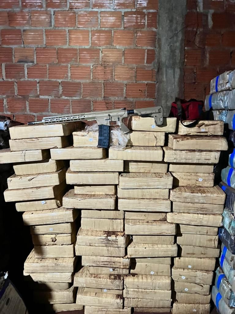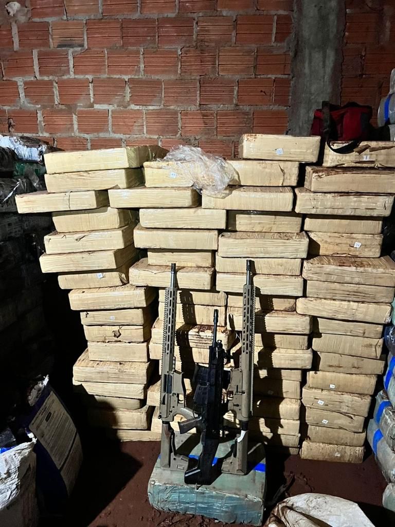 Além da droga, os policiais apreenderam dois fuzis calibre .762, um fuzil calibre .556, cerca de 257 munições calibre .762, 400 munições calibre 5,56 e 44 munições calibre 12. As armas estavam carregadas e prontas para uso, e as munições calibre .556 estavam guardadas em uma bolsa tática. Nenhum suspeito responsável pelos ilícitos foi encontrado no local.