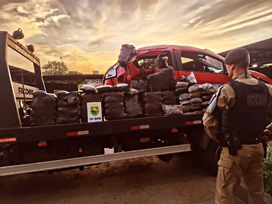 A Polícia Militar chegou ao local do acidente às 03h30. O carro estava sem ocupantes, mas carregado com entorpecentes. Durante a varredura no perímetro, os policiais descobriram que parte da carga havia sido espalhada em uma plantação ao lado da estrada.