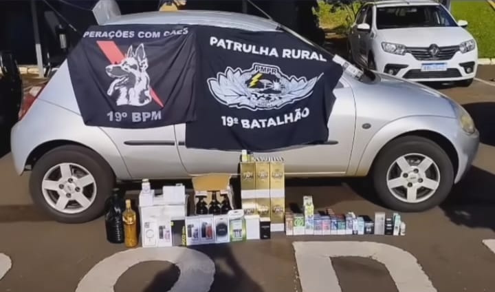 Eles estavam em um carro Ford/Ka que foi abordado na rodovia PR-317, próximo ao distrito de Ouro Preto. No veículo, foram encontrados celulares, cigarros eletrônicos, bebidas alcoólicas e acessórios eletrônicos.