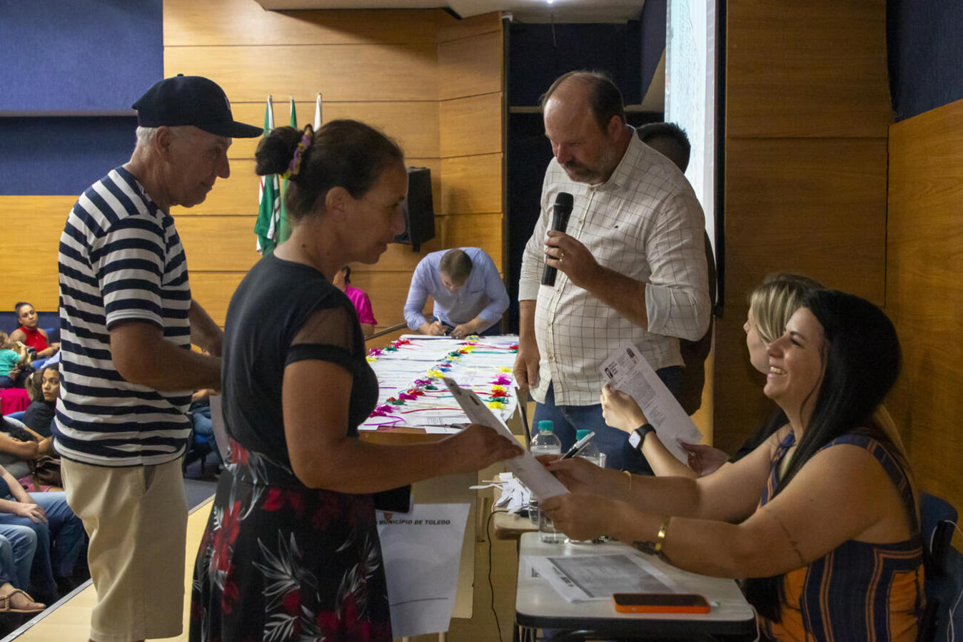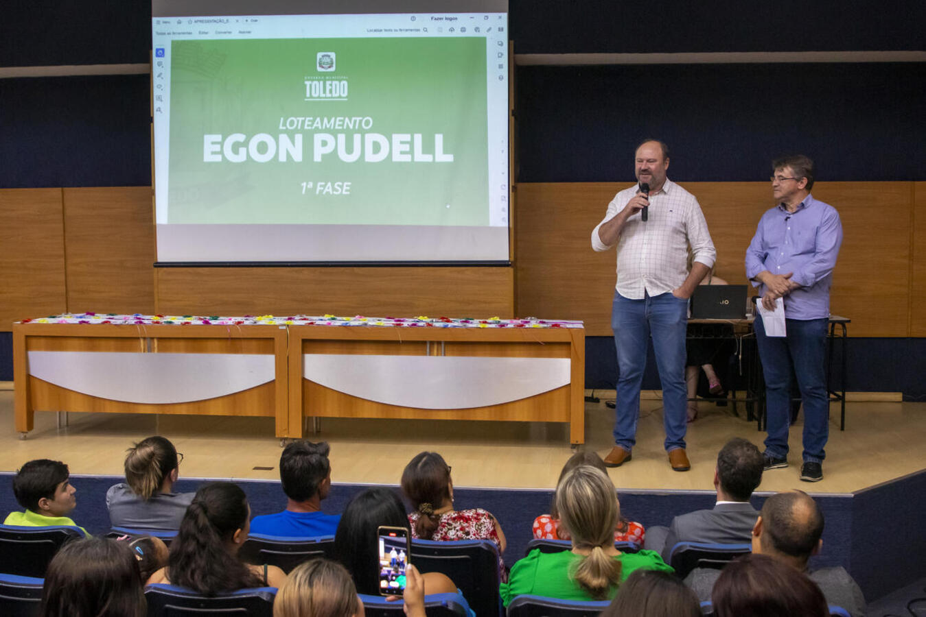 84 famílias de Toledo participaram de um sorteio no Auditório Acary Oliveira para escolher seus endereços no Loteamento Egon Pudell. O sorteio foi transmitido pelo YouTube e seguiu os critérios do Decreto nº 305/2021.