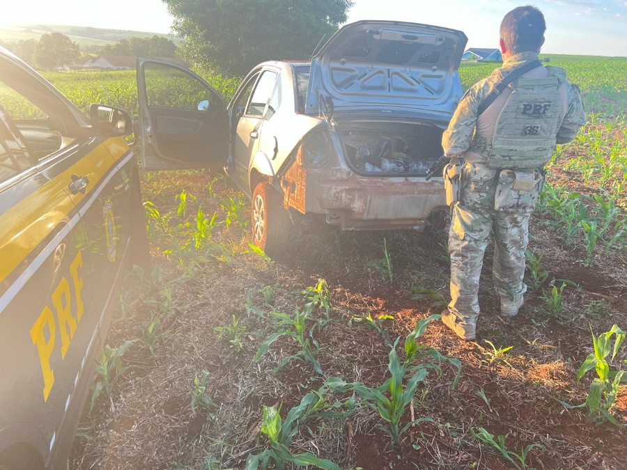 Segundo a PRF, os policiais deram ordem de parada a um veículo suspeito, mas o motorista não obedeceu e iniciou uma fuga. Após um acompanhamento tático, o condutor abandonou o carro em uma plantação de milho e correu para um matagal, não sendo localizado.