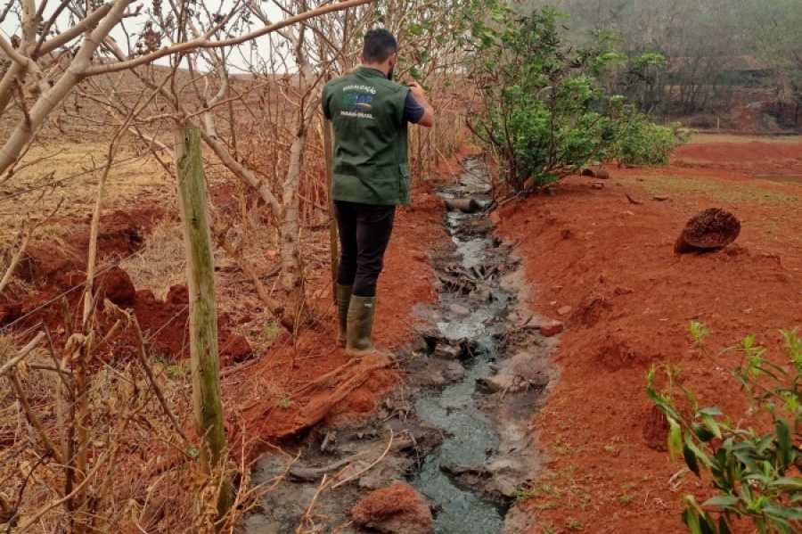 A água do córrego apresentou coloração escura, superfície espumosa e forte odor, confirmando a contaminação por dejetos suínos. Além da multa, o produtor teve os novos alojamentos de suínos embargados até a completa reparação do dano ambiental. De acordo com o engenheiro agrônomo do IAT, Angelo Augusto de Assis, os resíduos, despejados diretamente no solo, percorriam uma valeta até a APP, contaminando uma nascente e o córrego.