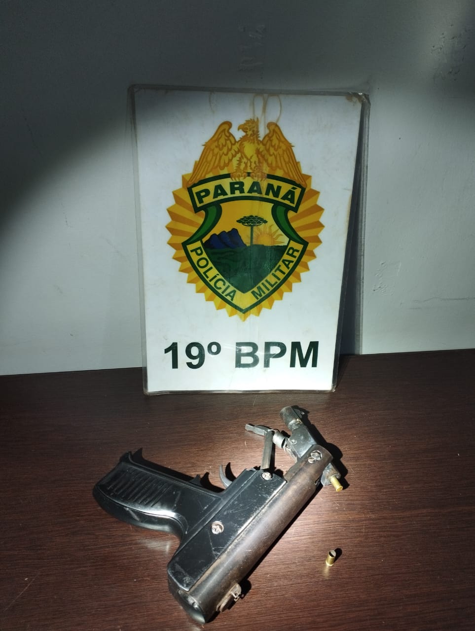 Durante a revista veicular, os policiais localizaram uma pistola calibre 22 no banco traseiro do veículo. Nenhum dos indivíduos quis assumir a posse e a propriedade da arma de fogo. A polícia também constatou que o veículo possuía indicativo de furto e roubo.