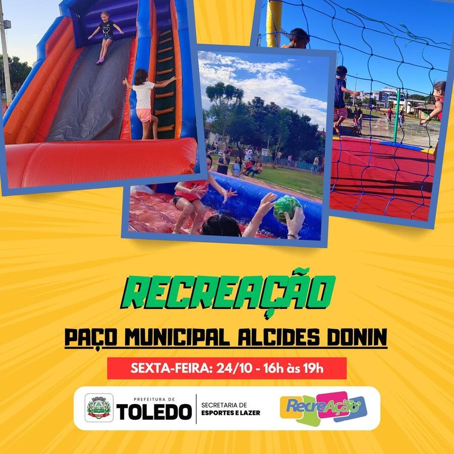 Brinquedos infláveis, cama elástica e muita diversão chegam ao Paço Municipal Alcides Donin nesta sexta-feira (24), a partir das 16 horas. A participação é aberta a toda a população, que pode trazer cadeiras e pipoca para aproveitar a tarde. O evento integra o calendário do Mês das Crianças, promovido pelo programa RecreAção, da Secretaria de Municipal de Esportes e Lazer (Smel).