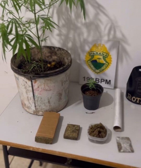 Na residência, o suspeito resistiu à ação policial e tentou incitar familiares, sendo contido pelos agentes. Nas buscas, foram localizados aproximadamente 604 gramas de maconha, distribuídos em tabletes e porções, além de duas plantas da droga e materiais utilizados para fracionamento e embalagem. O homem recebeu voz de prisão e foi levado à delegacia, onde o caso foi formalizado.