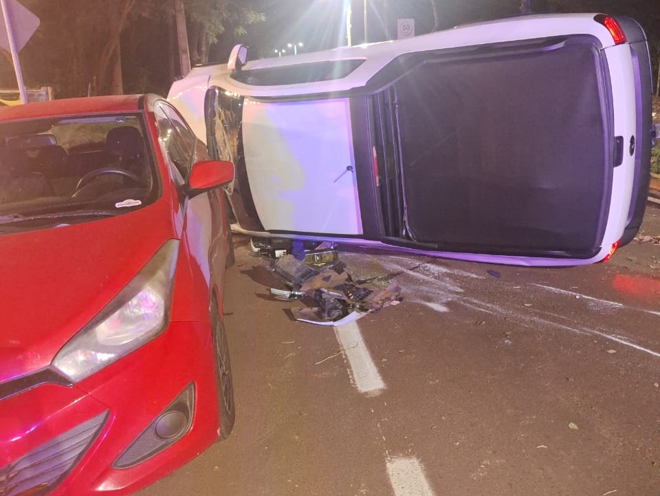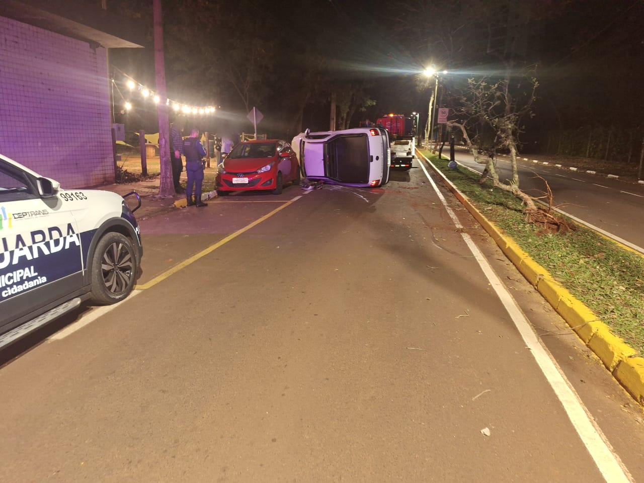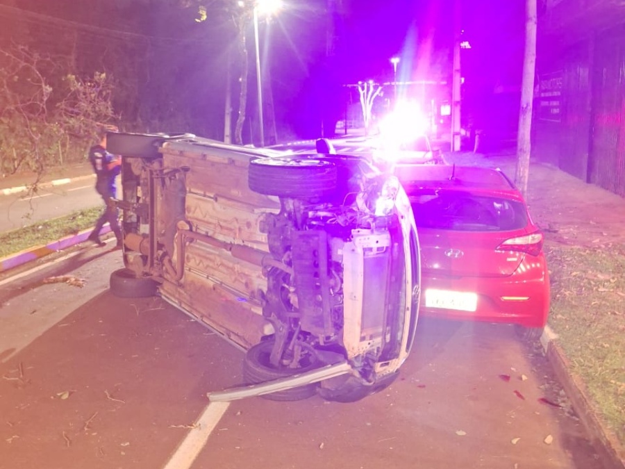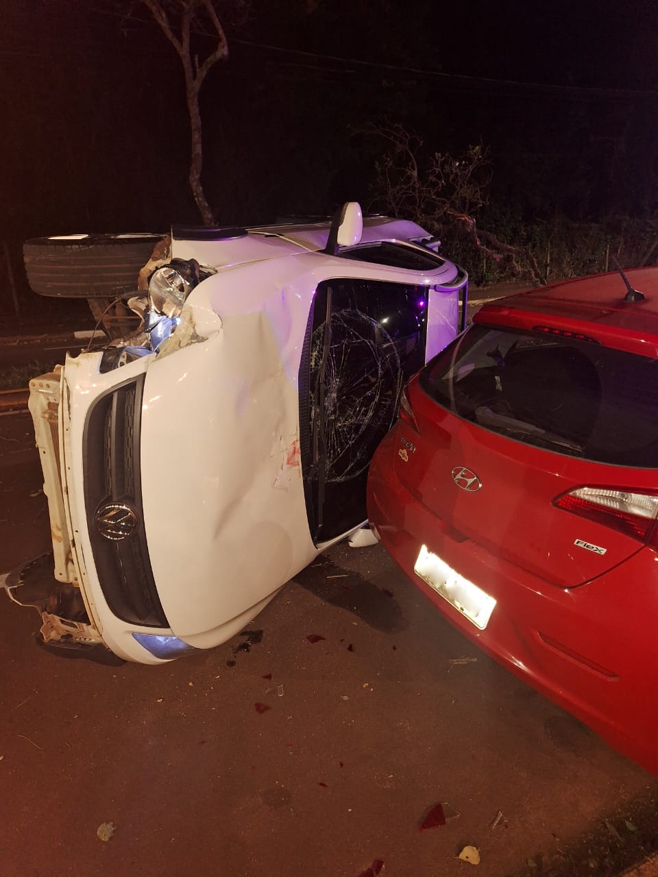 A batida provocou o tombamento da Saveiro, que ainda atingiu um Hyundai/HB20, que estava estacionado na pista contrária.