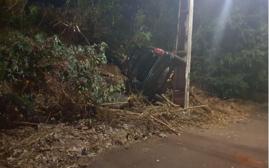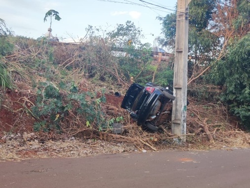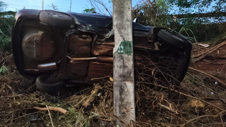 Ainda durante a madrugada, um carro GM/Classic capotou na rotatória do trevo para São Pedro do Iguaçu. O carro anda atingiu um poste, após capotar e descer o barranco. Não há informações de feridos e a PM e a Guarda Municipal estivam no local.
