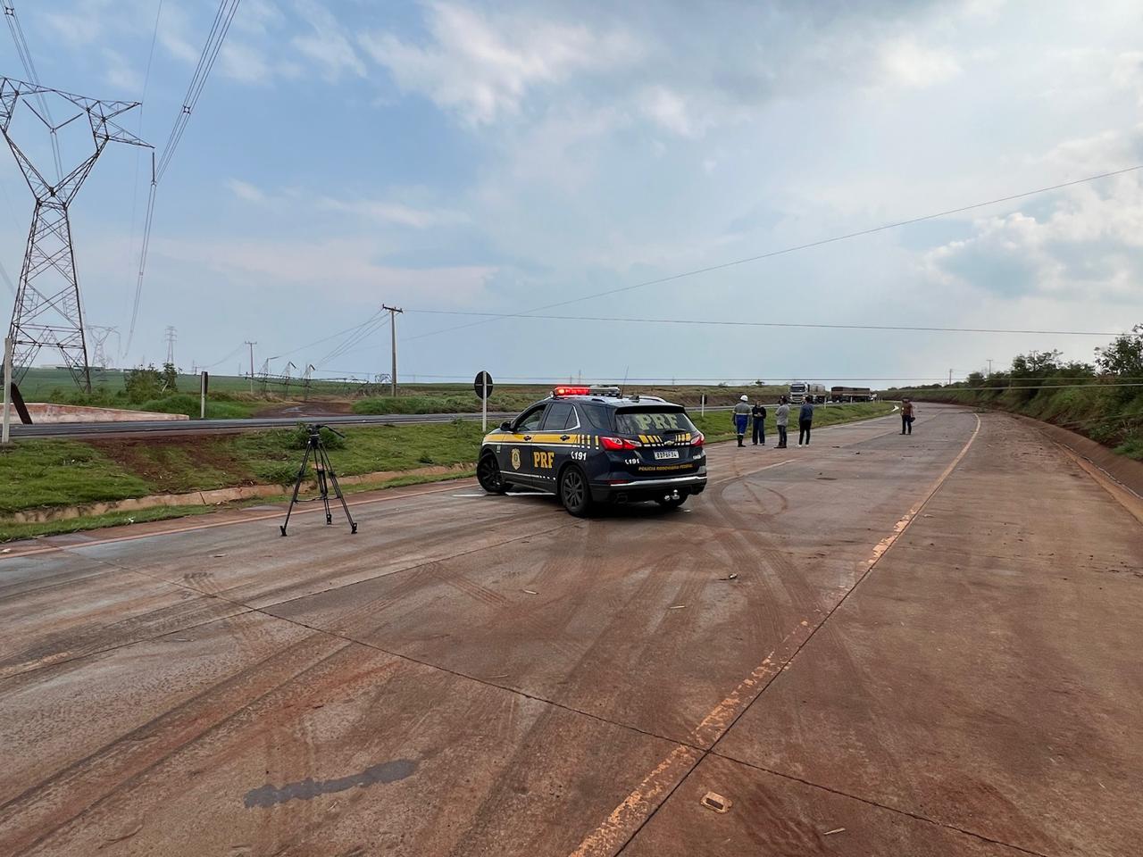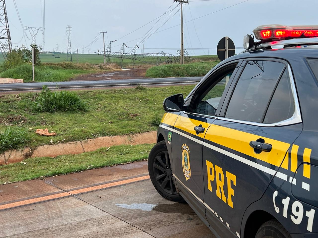 Os fios ficaram caidos sobre a rodovia. Equipes da PRF e da Copel estão no local e não há previsão de liberação da BR-163 no local.