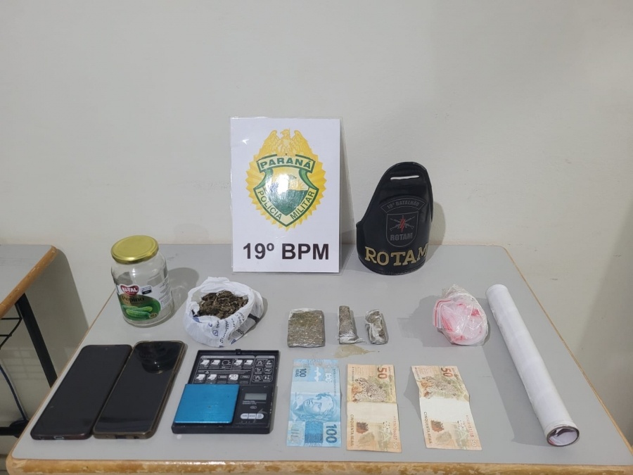O suspeito foi encaminhado, juntamente com os objetos apreendidos, às autoridades responsáveis para os procedimentos legais. A ocorrência integra as ações de repressão ao tráfico desenvolvidas pela Polícia Militar do Paraná no município.