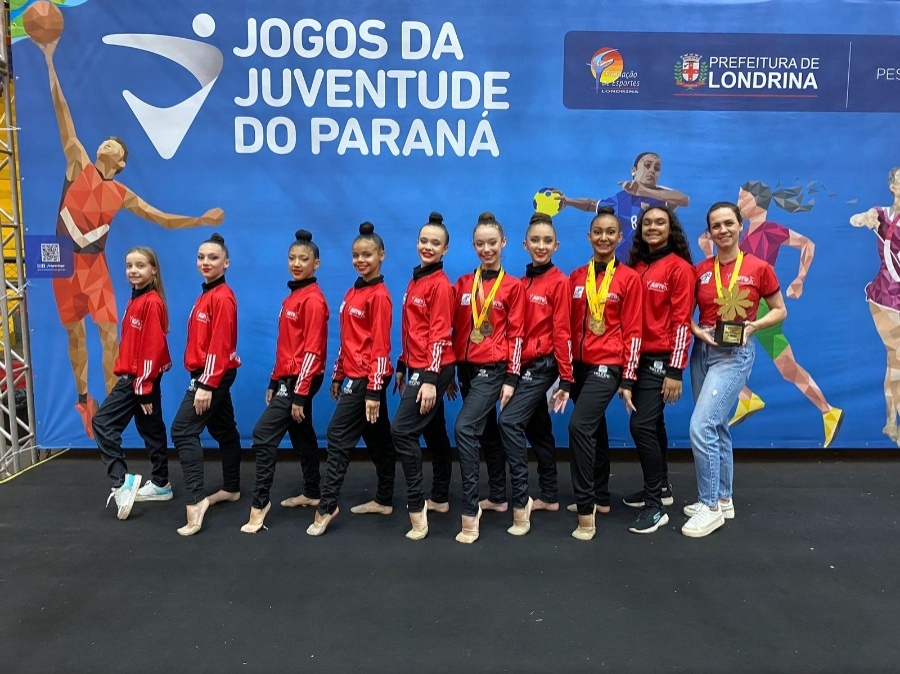 A equipe de Toledo conquistou o título de campeã geral de Ginástica Rítmica no 35º Jogos da Juventude do Paraná (JOJUPS), que aconteceram em Londrina neste final de semana. O time também foi campeão por equipes, somando apenas as competições individuais.