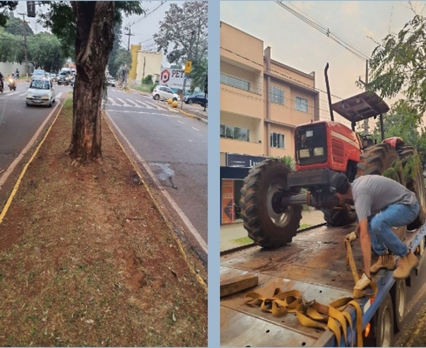 Para evitar danos maiores ou um acidente mais grave, o condutor do trator jogou o maquinário agrícola no candeiro central, vindo a colir com um árvore, próximo ao cruzamento com a Rua Guaíra.