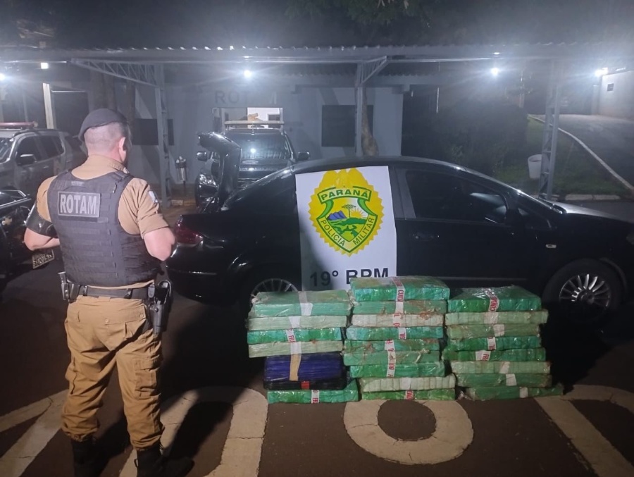 Conforme o 19ºBPM, policiais da Agência Local de Inteligência realizavam patrulhamento ostensivo, quando avistaram um veículo suspeito trafegando pela PR 317 com os faróis apagados, próximo à Ouro Verde do Oeste.