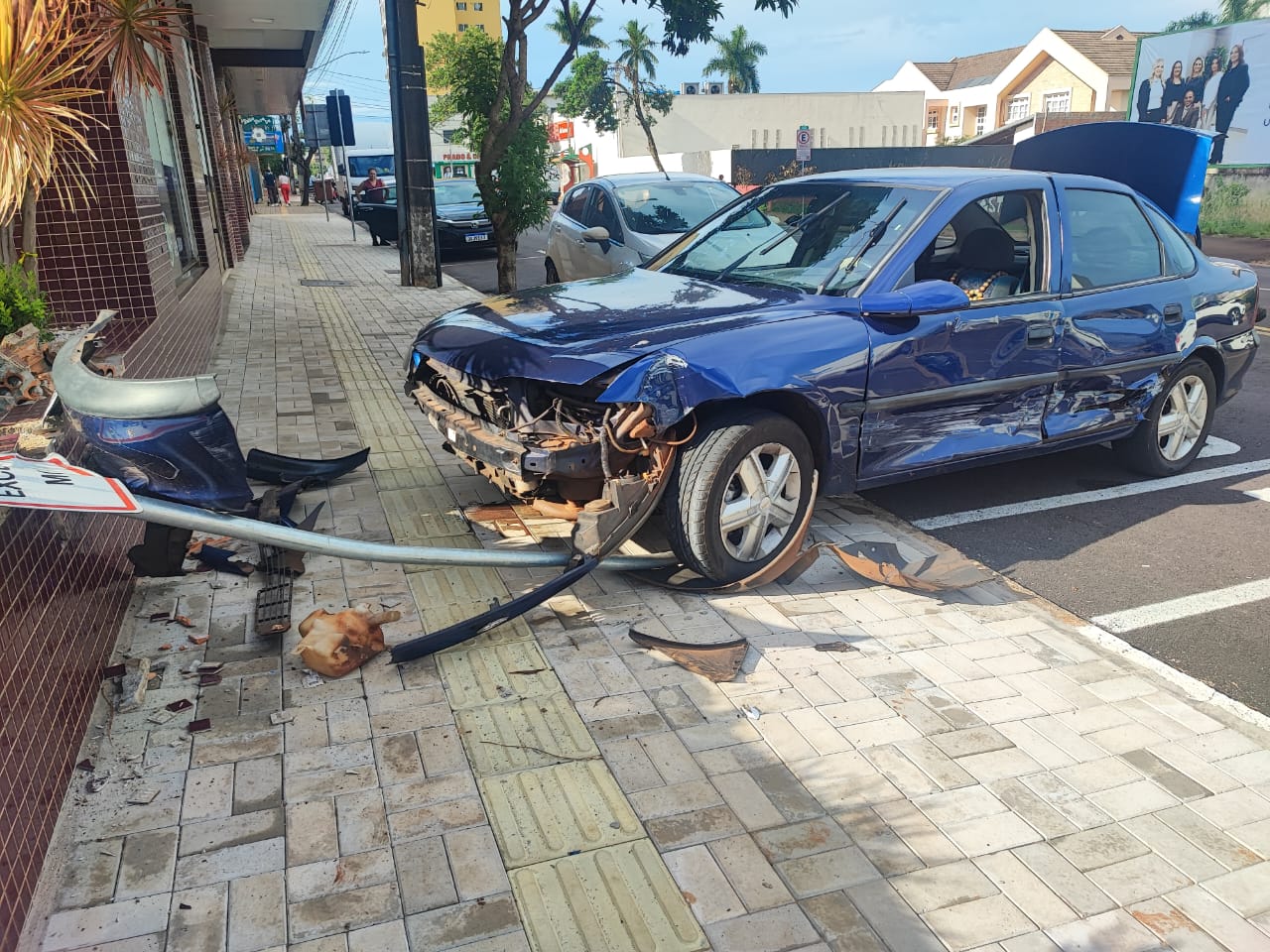 Com o impacto, o Vectra perdeu o controle e parou sobre a calçada, causando danos materiais no veículo.