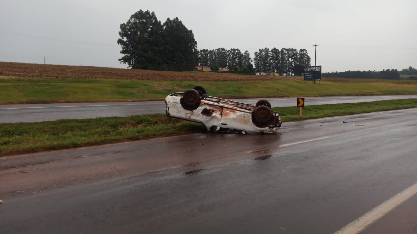 Uma mulher de 35 anos ficou ferida em um capotamento na BR-163, na manhã desta sexta-feira (12).