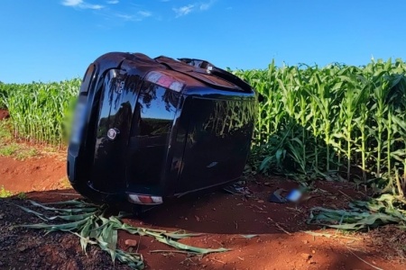 Capotamento na BR-163 deixa motorista ferido, entre Toledo e Sede Alvorada