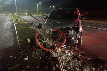 Motorista foge após bater caminhonete em poste e deixar duas mulheres feridas em Toledo