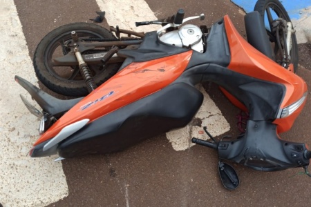 Mulher fica ferida ao colidir moto com picape no centro de Toledo