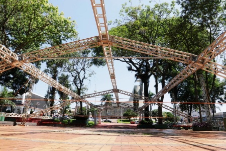 Praça Willy Barth começa a receber Vila de Natal e Casa do Papai Noel