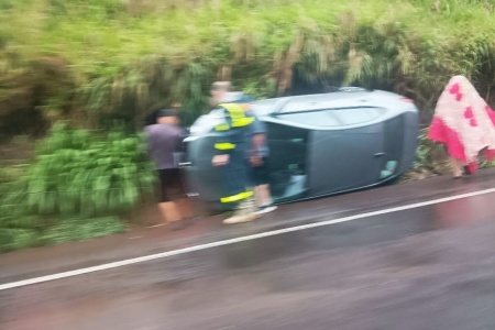 Policial fica ferida em colisão seguida de capotamento na BR-163 entre Toledo e Cascavel