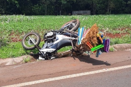 Condutor de moto paraguaia fica ferido em acidente na PR-585 em Toledo