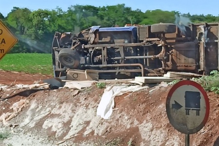 Caminhonete colide em barranco e capota, na BR-163 entre Toledo e Cascavel