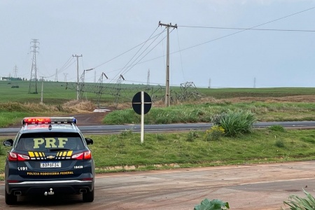 Temporal derruba postes e torre em Cascavel e bloqueia BR-163