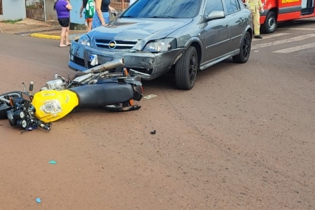 Jovem resulta com suspeita de fratura após colisão entre moto e carro em Toledo