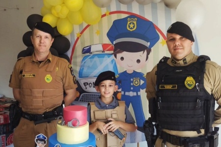 Policiais realizam sonho de menino de 9 anos em Toledo e o visitam no dia de seu aniversário