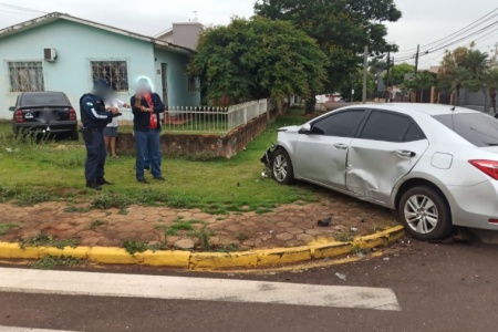 Carro invade pátio de residência após acidente no Jardim Porto Alegre, em Toledo