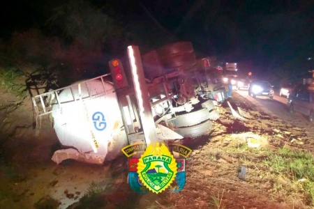 Caminhão de Toledo tomba na PR-431 e motorista fica gravemente ferido