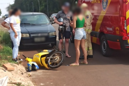 Colisão frontal entre carro e moto deixa motociclista ferida em Toledo