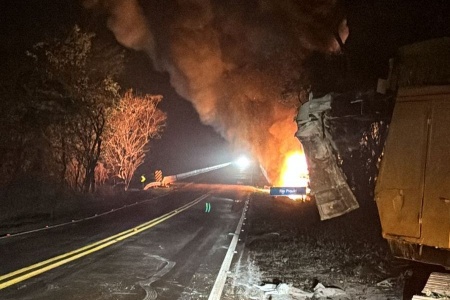 Caminhão cai da Ponte do Rio Piquiri e pega fogo em Palotina; Motorista morreu