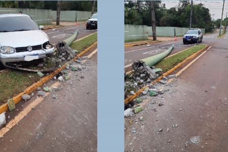 Carro colide com poste na Rua Carlos Barbosa em Toledo