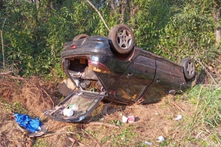Carro capota na PR-317 entre Toledo e Ouro Verde do Oeste