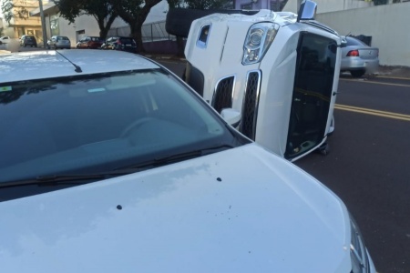 Em fuga da PM, carro furtado se envolve em acidente no centro de Toledo