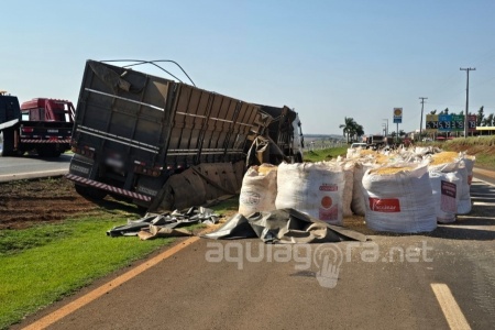 Carreta carregada com milho tomba na BR-163 em Toledo