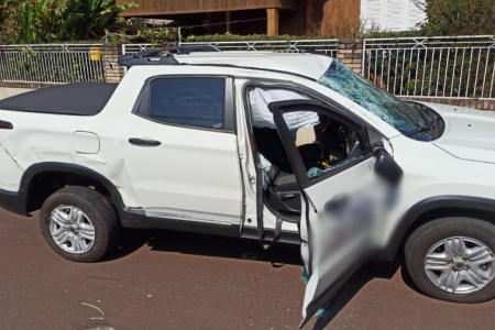 Carro da prefeitura de Entre Rios do Oeste capota após forte colisão em Toledo